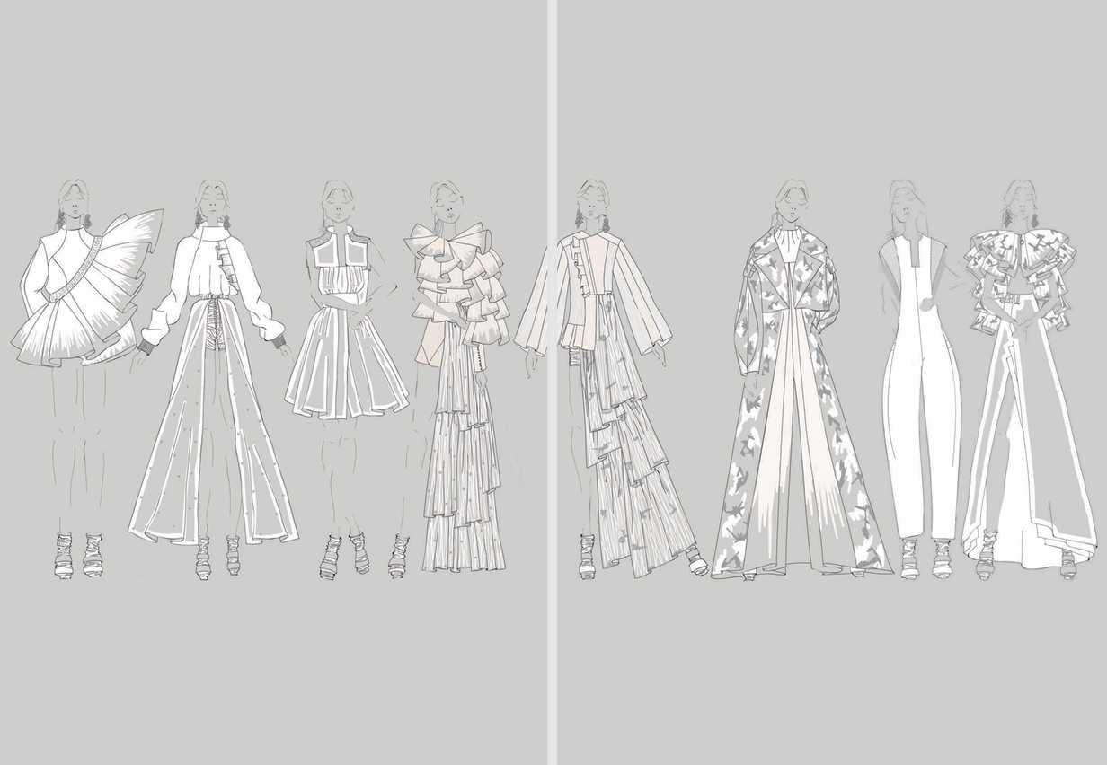 Selección de la tesis de final de carrera, inspirada en el gran hito del viaje a la luna, creando así, una colección delicada i harmoniosa.