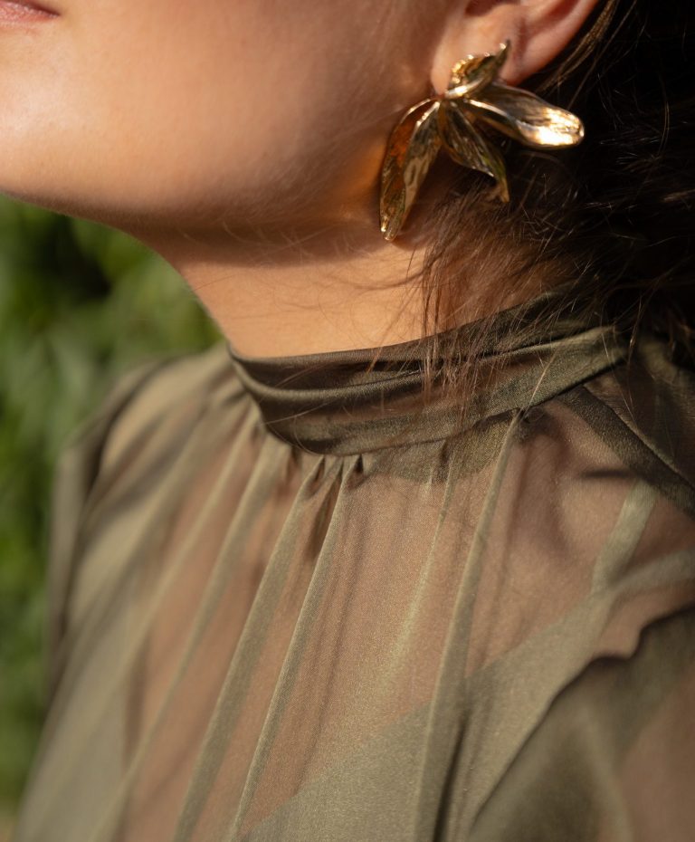 Chaqueta de gasa con diseño fruncido lateral y una manga.